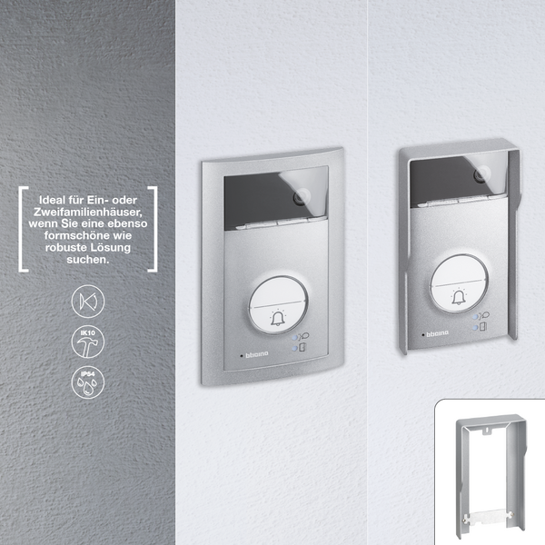 - Je nach gewähltem Set und Türstation beträgt die Schutzart IP54 und die Schlagfestigkeit IK10